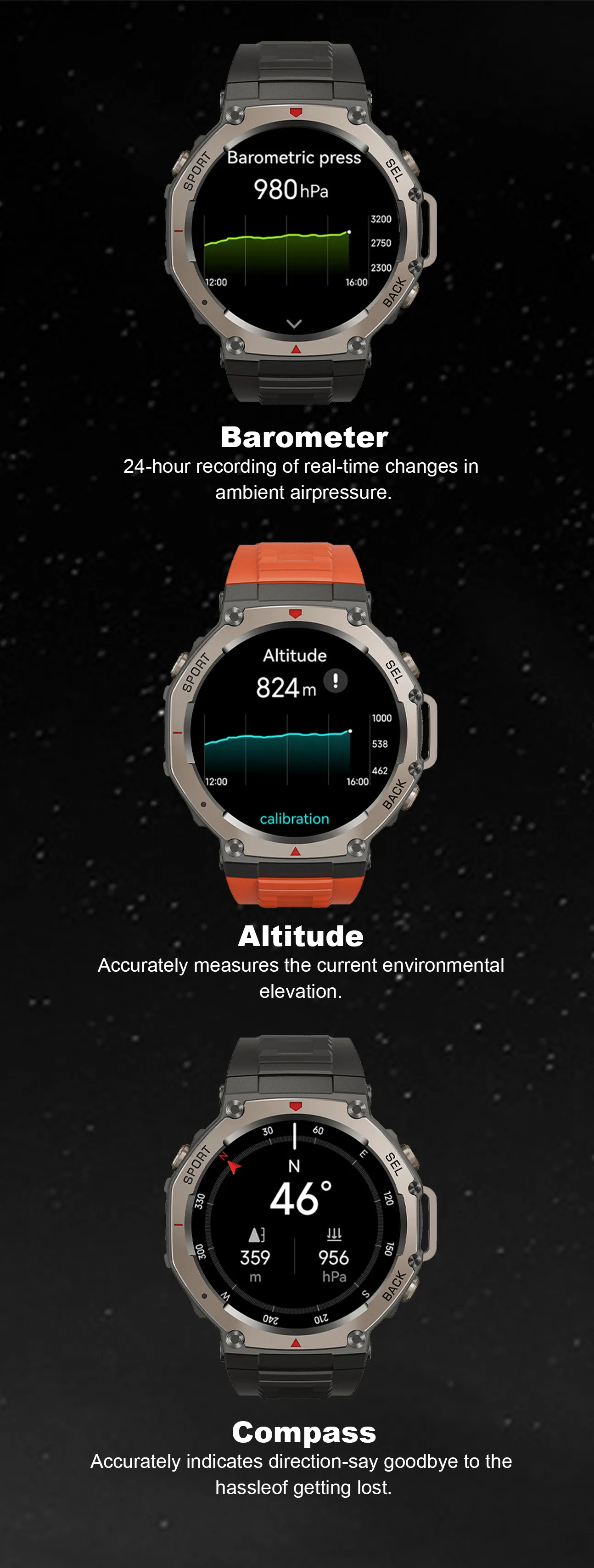 - Comprehensive Sports & Health Monitoring- Multi-functional sensors precisely track 170+ sports and health data.